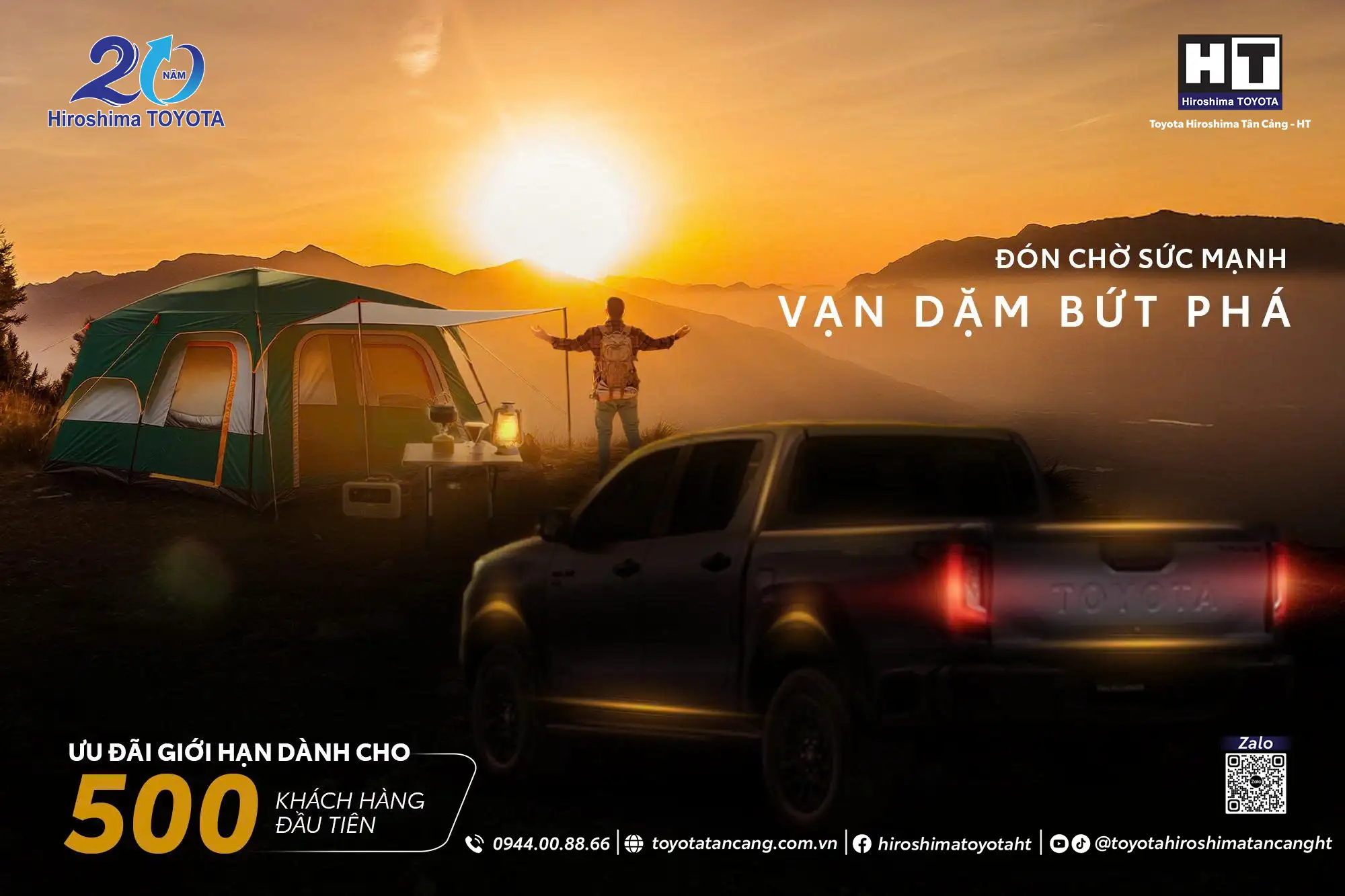 🎁 Ưu đãi giới hạn dành cho 500 khách hàng đầu tiên sở hữu mẫu xe hoàn toàn mới với cơ hội nhận những phần quà giá trị khi đăng ký sớm tại Toyota Hiroshima Tân Cảng – HT.